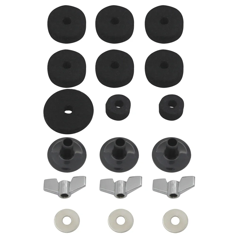 18 Pcs/Set Drum Kit Cymbal Accessories Felt Pads+Wing Nuts+Washers+Pipe Sleeves Percussion Musical Instrument Replacement Parts
