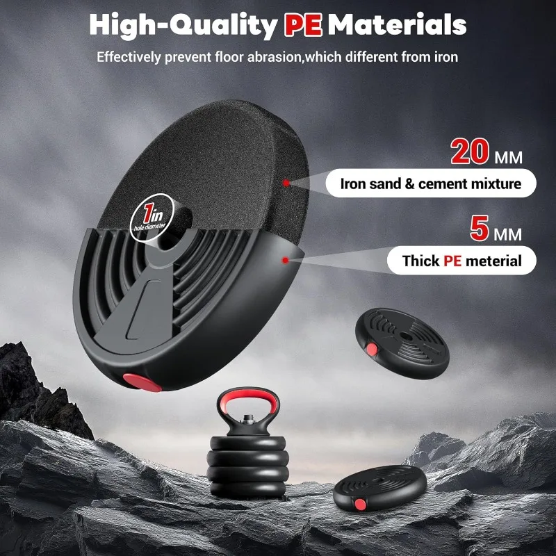 - 【Made from High-quality Material】: This 4 in 1 adjustable dumbbell set is all made from high-quality materials, it ensure that our dumbbell set not only durable, but also odorless. The weight plate’s interior is filled with a mixture of iron sand and cement, and the shell is blown molded from PE material, which no damage to your floor.