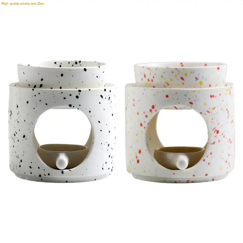 Colorful Dots Ceramics Aromas Diffuser Burners with Tealight Holder Spoon and Removable Bowl for Scented Distribution 203F