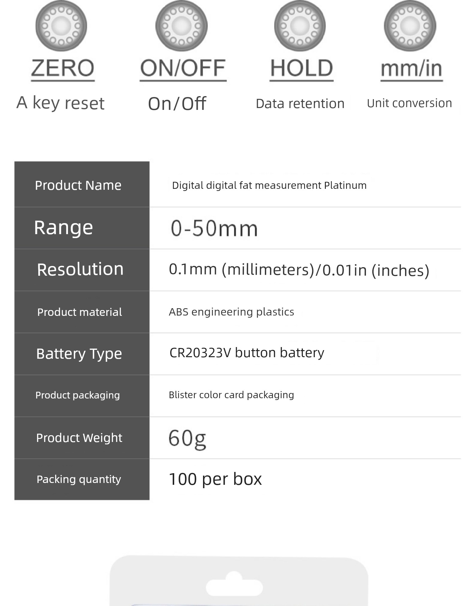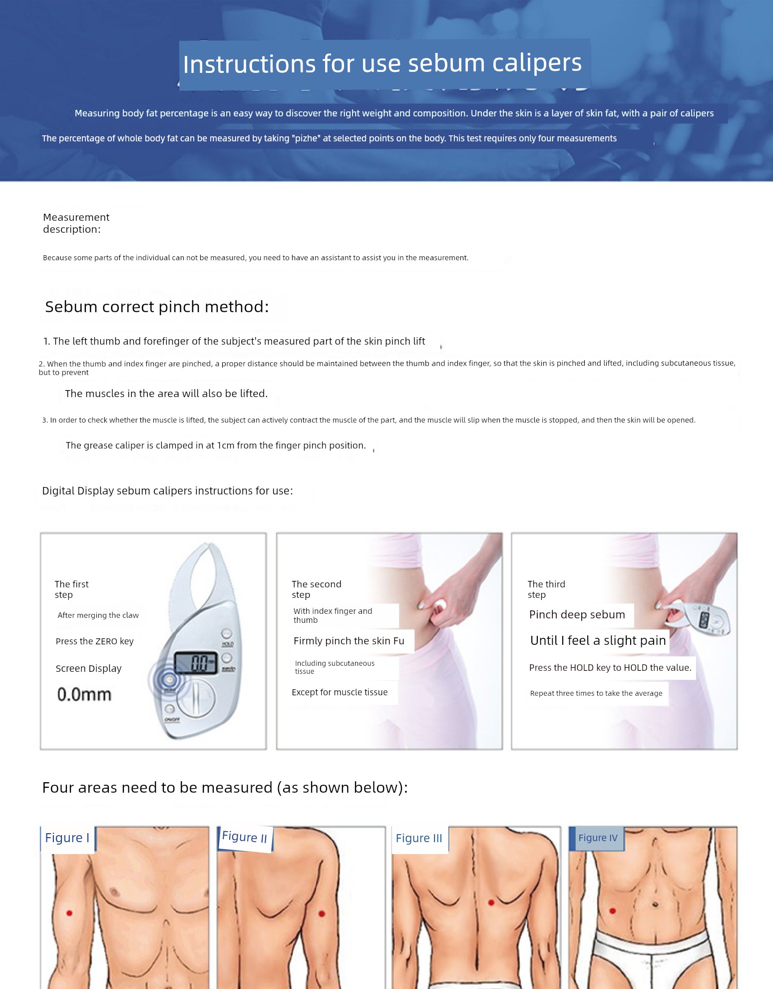Digital Digital Fat Caliper Body Fat Clip Skin Fold Thickness Measuring Instrument Skin Fat Clip Body Fat Rate Fat Pliers Fitness Ruler