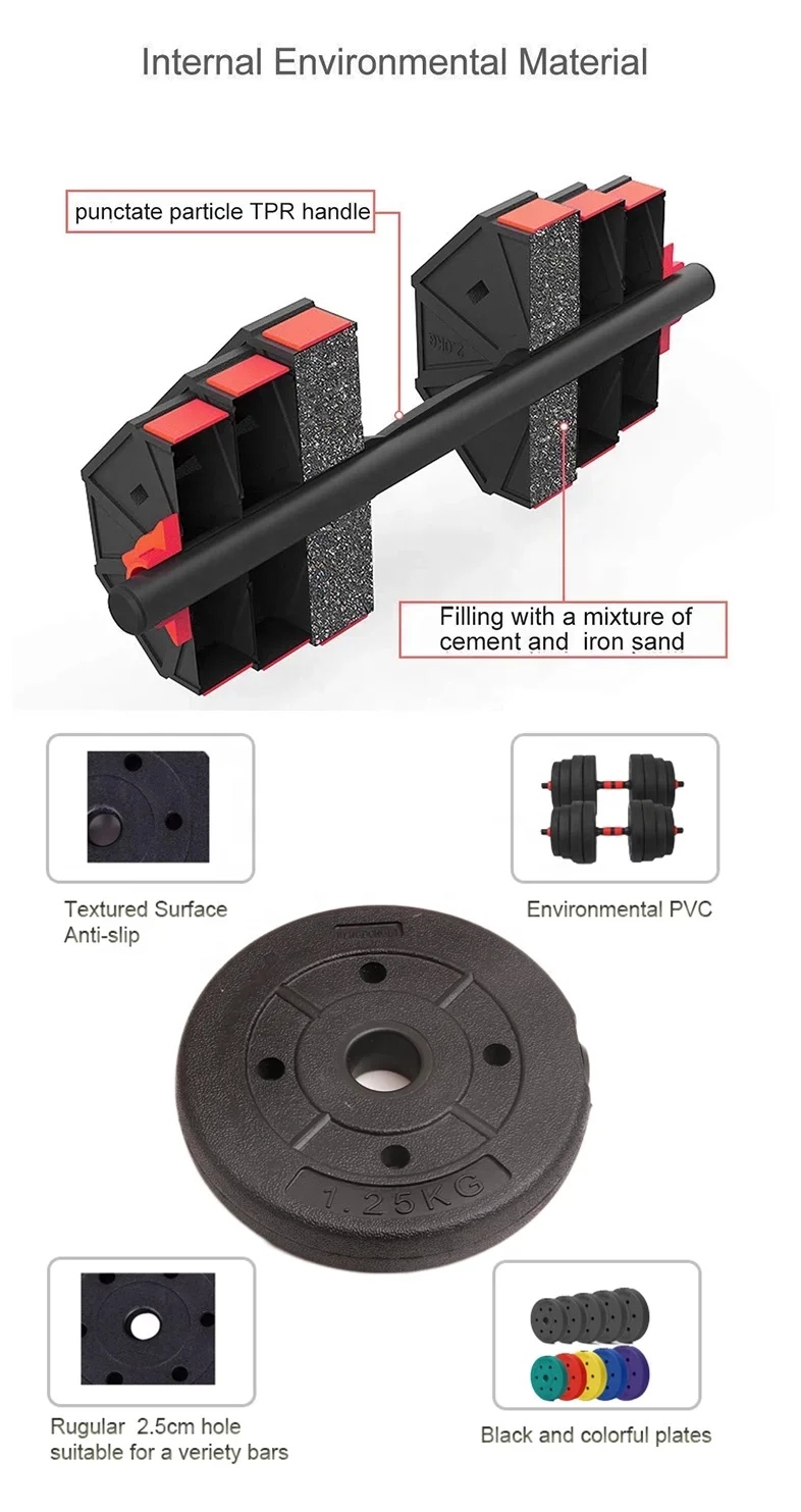 Home Gym Fitness Cement adjustable Barbell Dumbbell Set Weight Lifting Free Weights |