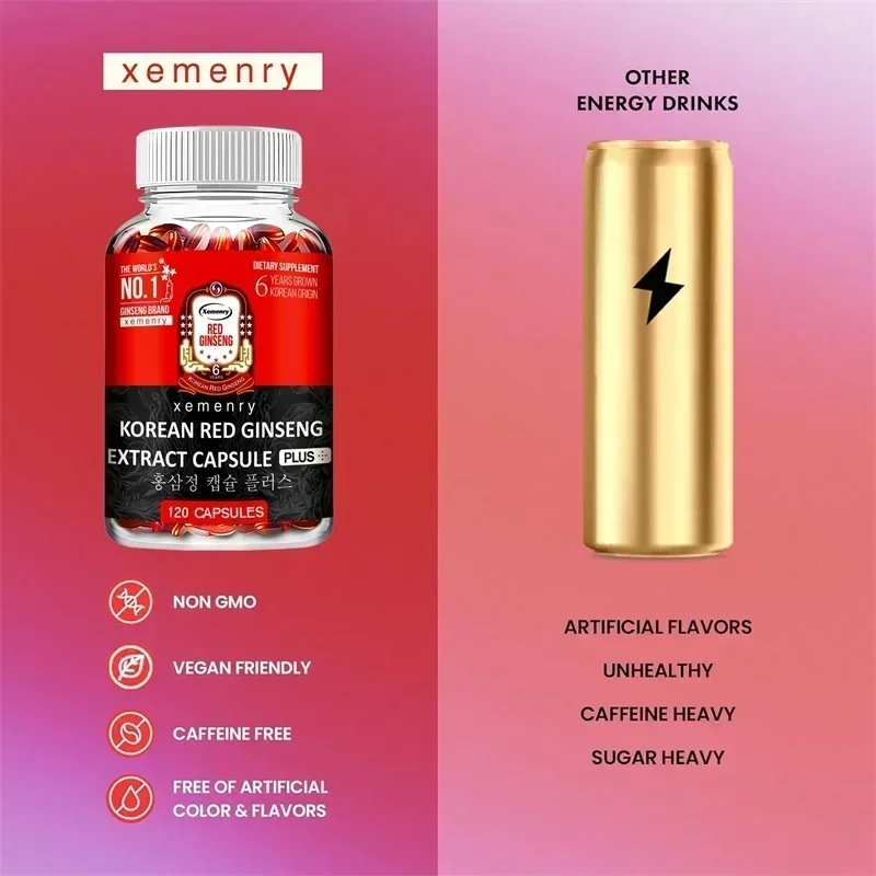 Korean Red Ginseng Supplement - Supports Overall Health, Boosts Energy Production, Relieves Stress, and Strengthens Immunity